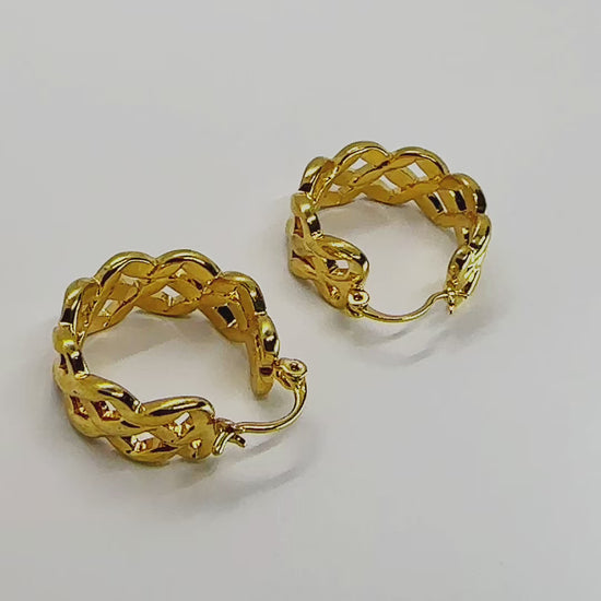 Criss-Cross Basket Hoop Earrings | 18K Gold Tone