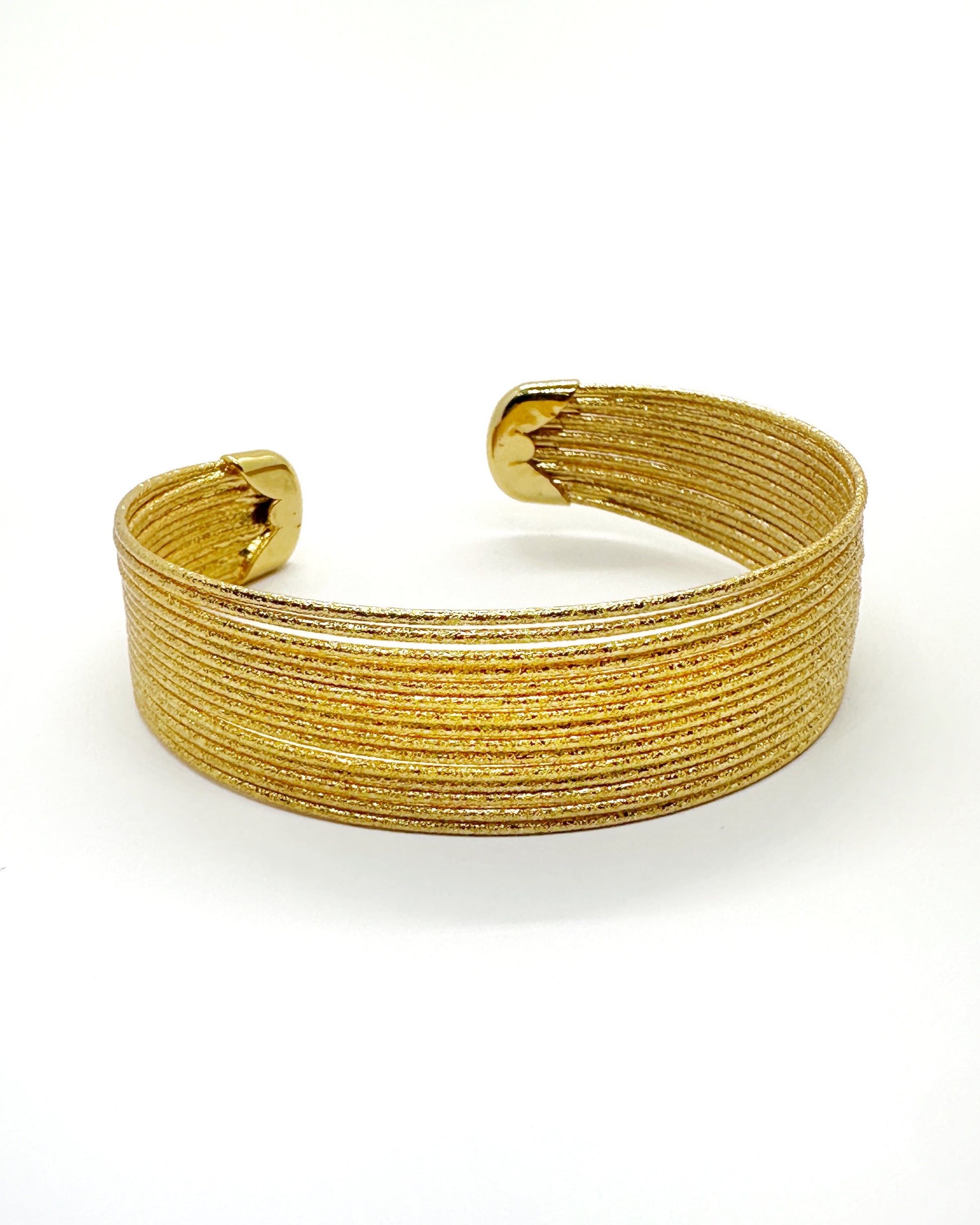 Sculptural, striking, and effortlessly sophisticated—this layered strand cuff and ring set adds texture and shine to your every move. Crafted with Luxury-Grade 18K Gold Plating over a hypoallergenic, nickel-free base, it features fine, stacked strands that catch the light from every angle.