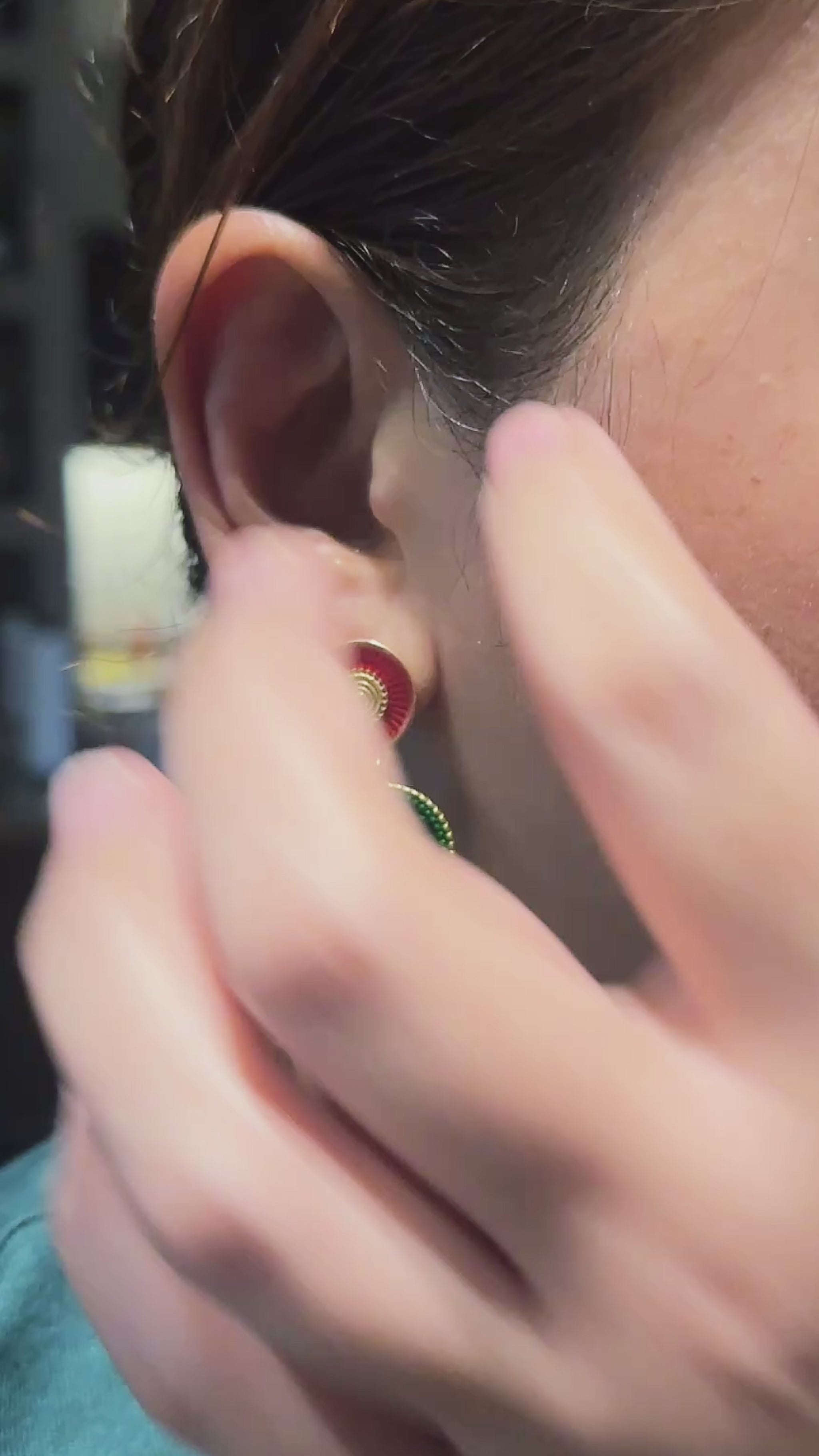 Care Tip: To keep your earrings looking vibrant, gently clean them with a soft cloth or use mild soap and water. Avoid harsh chemicals to preserve the enamel and gold-tone finish, ensuring long-lasting beauty and shine.