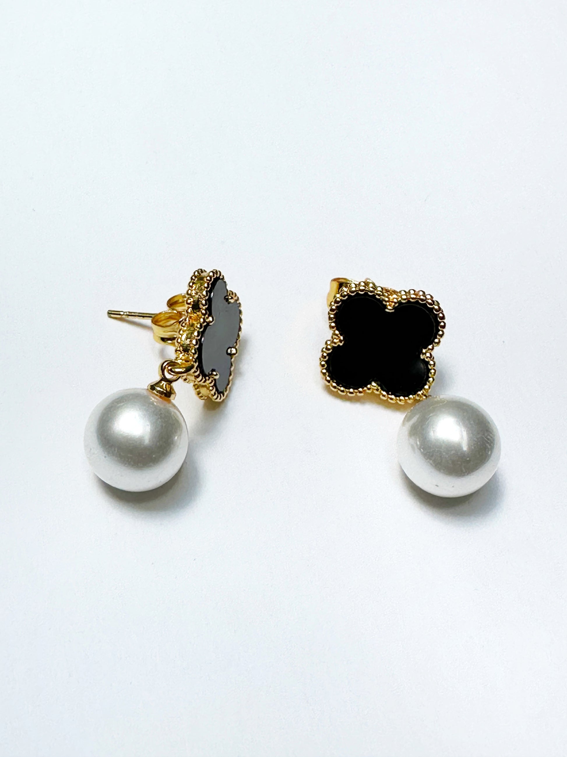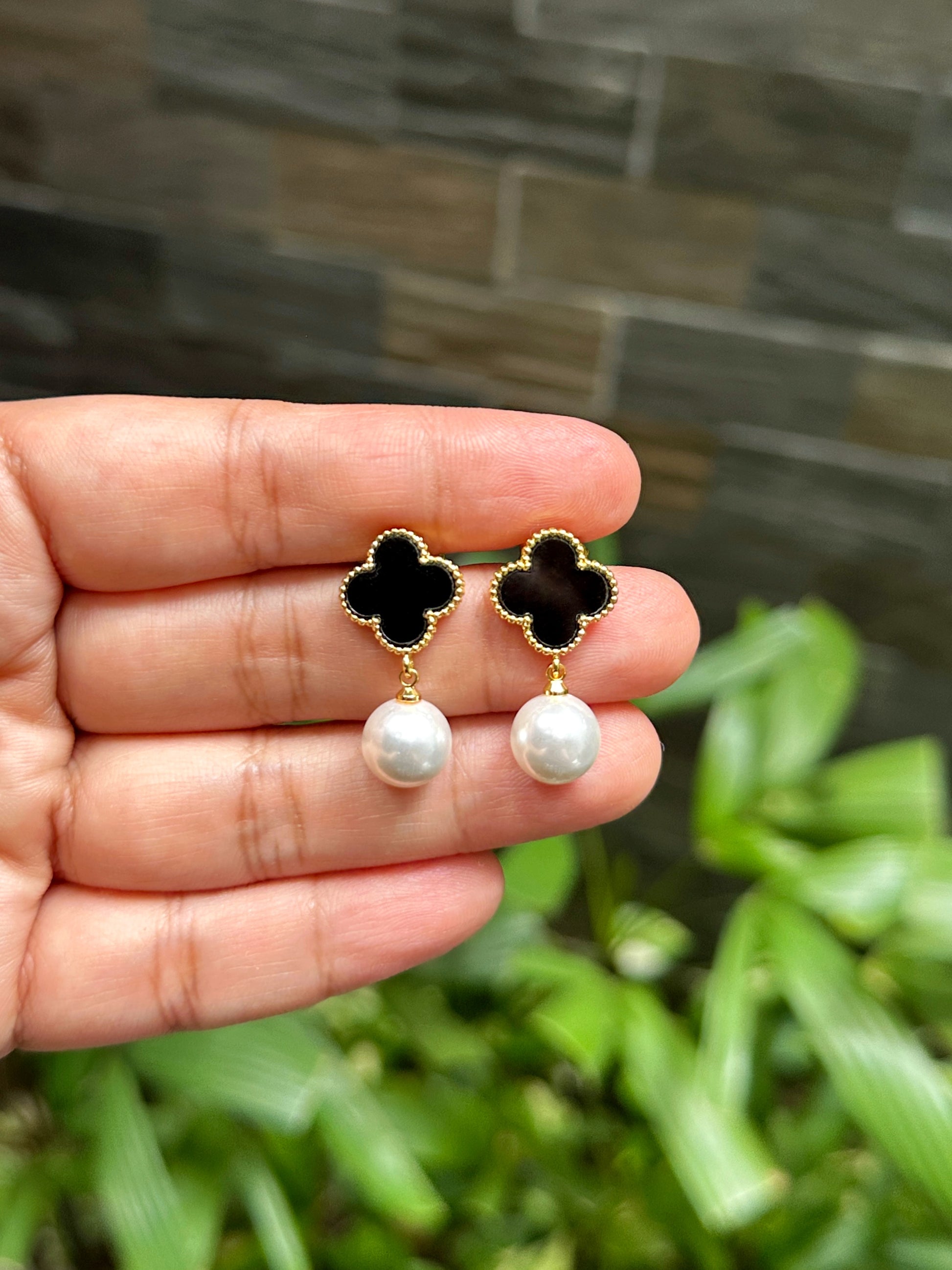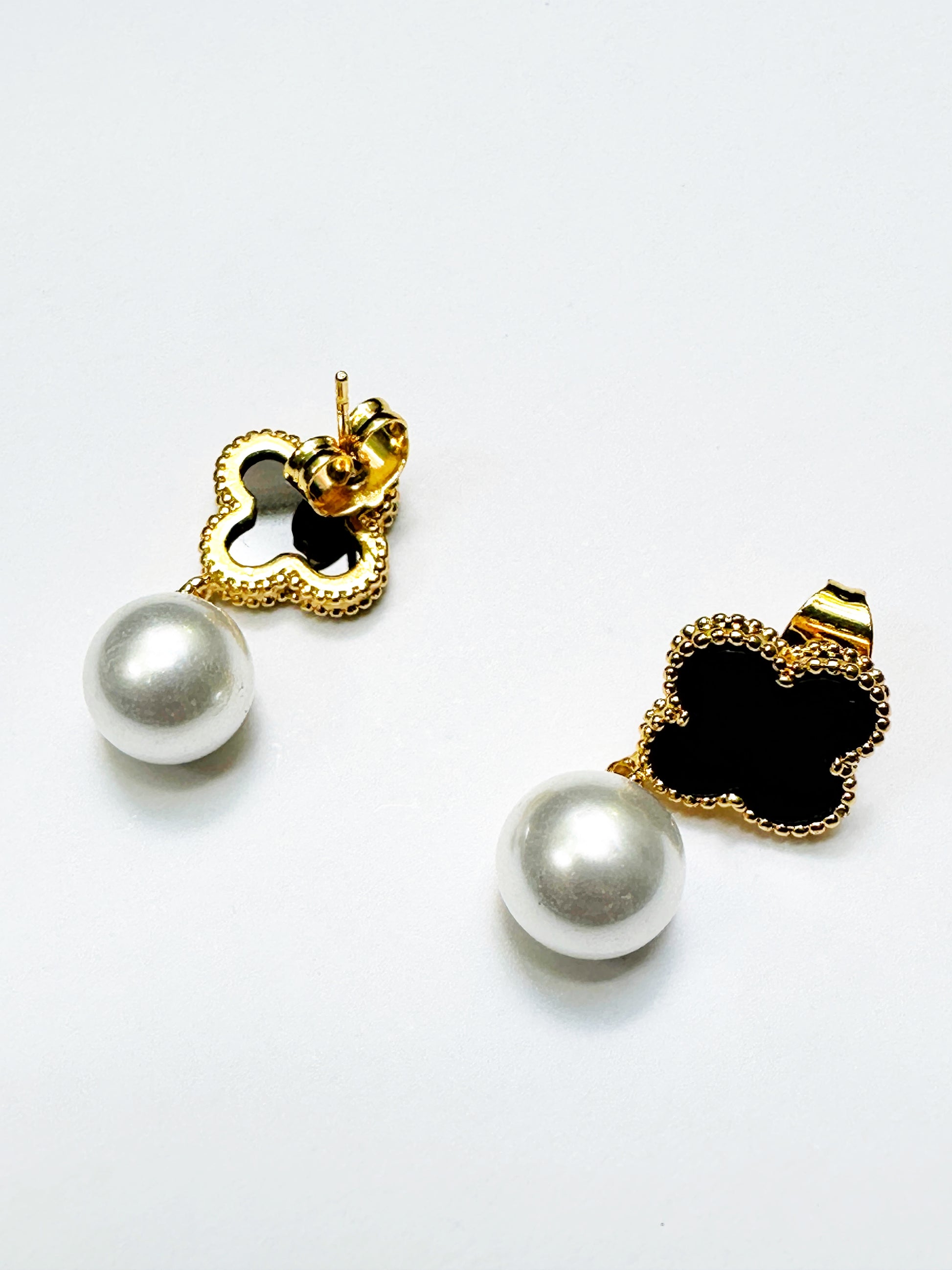 - Classic clover silhouette with elegant faux pearl drop